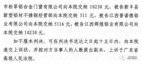 河南凤铝系列维权案:诉辉煌公司等四被告,法院判赔250余万